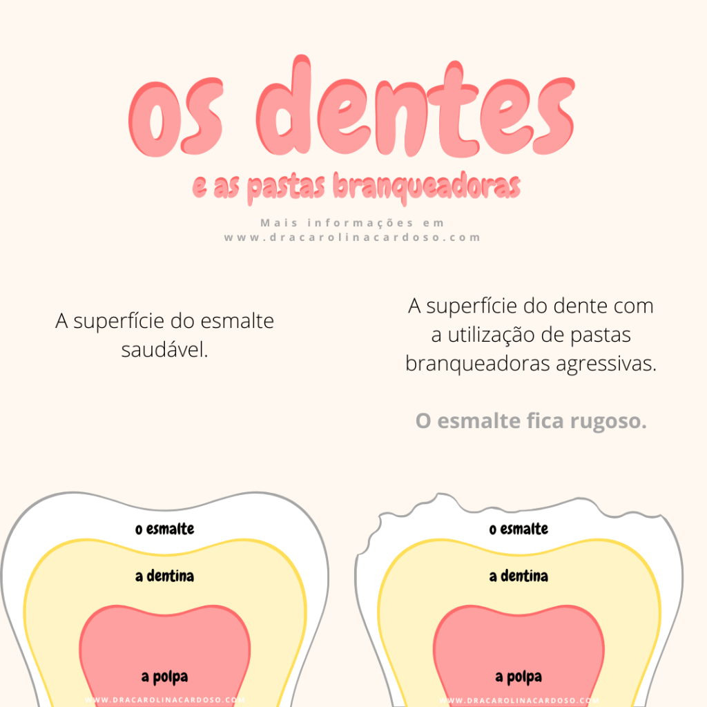 - Não utilize pastas branqueadoras nem pastas de carvão ativado. Estas pastas atuam “atacando” a camada de esmalte do dente deixando o esmalte debilitado. Trazendo consequências graves para o futuro.